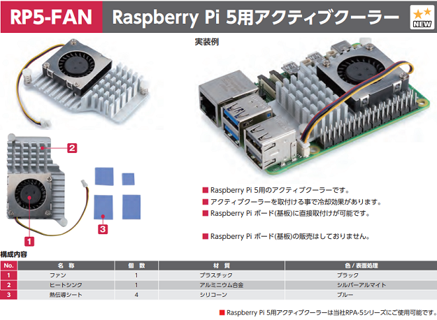 > RP5-FANシリーズ Raspberry Pi 5用アクティブクーラー
