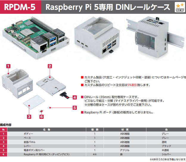 RPDM-5 Raspberry Pi 5専用 DINレールケース