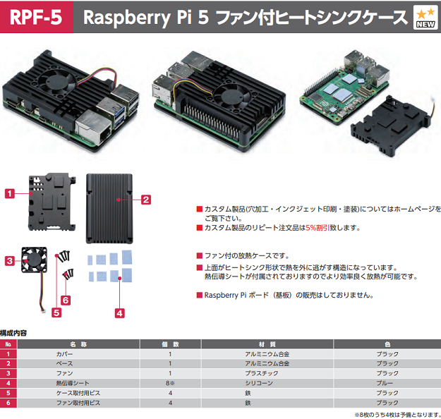 > RPF-5シリーズ Raspberry Pi 5 ファン付ヒートシンクケース