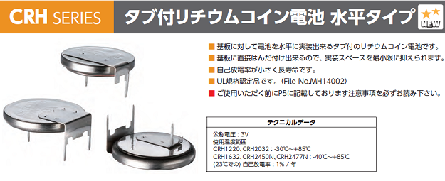 | takachi | CRH1220-T タブ付リチウムコイン電池 水平タイプ | 24,850円 | |